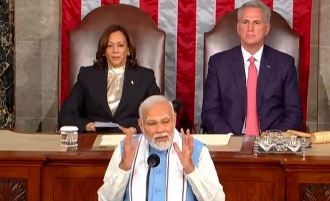 PM Modi received standing ovation and applause when he said, "There are millions here, who have roots in India. Some of them sit proudly in this chamber. There is one behind me, who has made history. I am told that the Samosa Caucus is now the flavour of the House," Addressing the joint session of the US Congress, PM Modi said, "It is always a great honour to address the US Congress. It is an exceptional privilege to do so twice. For this honour, I extend my deepest gratitude on behalf of 1.4 billion people of India. I see that nearly half of you were here in 2016. I can also see the enthusiasm of the old friends and the new friends in the other half."